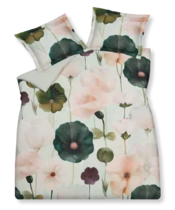 Dekbedovertrekset Finesse in de kleur pistache combineert grote roze klaprozen met groene accenten op glad katoensatijn. Alleen de voorzijde is bedrukt, met een effen achterzijde en een kussensloop met oxford rand. Krachtig en verfijnd. Dit 100% katoensatijnen dekbedovertrek biedt een luxueuze en comfortabele slaapervaring dankzij de zachte, soepele textuur en ademende eigenschappen. Het speciale weefsel van fijne katoengaren zorgt voor een glad oppervlak en lichte glans. Hierdoor voelt het heerlijk zacht op de huid, wat zorgt voor comfortabel slapen. Bovendien reguleert katoen van nature de lichaamstemperatuur en absorbeert het vocht, wat resulteert in een aangenaam slaapklimaat en goede nachtrust.